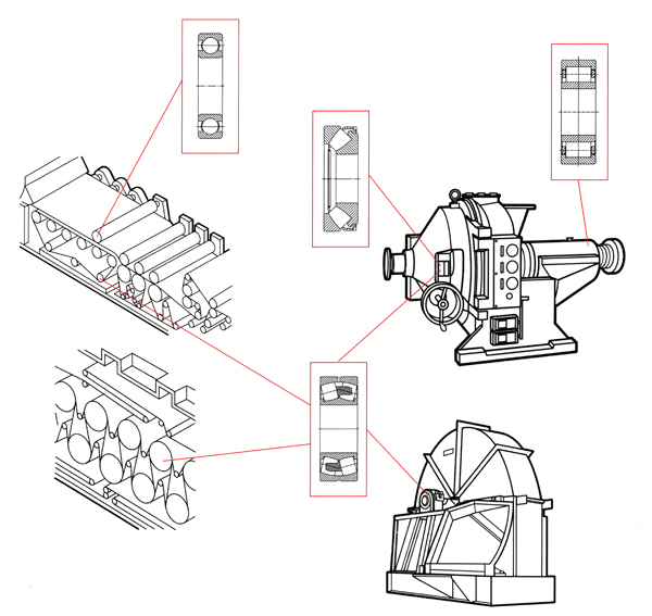 現(xiàn)代造紙機械的運行特點是生產(chǎn)運行高度自動化,體現(xiàn)出高速、高質(zhì)、高效及對環(huán)境友好的特點。要求軸承在承受重載、高溫、高速的條件下能夠長期可靠地運行。根據(jù)造紙設(shè)備不同部位的應(yīng)用特點,開發(fā)了專用系列產(chǎn)品。