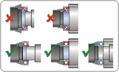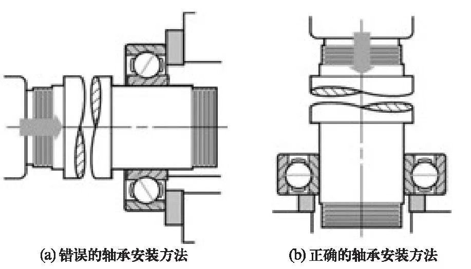 軸承安裝裝反了,不僅軸承工作不正常,且各配合面會遭到嚴重磨損。由于軸圈與座圈和區(qū)別不很明顯,裝配中應格外小心,不能裝反。